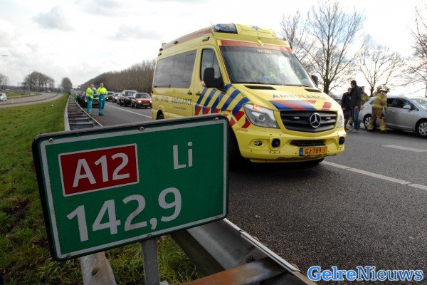 ZEVENAAR – Op de A12 bij Zevenaar zijn zaterdagmiddag twee personenauto’s zijn door een onbekende reden tegen elkaar geknald.