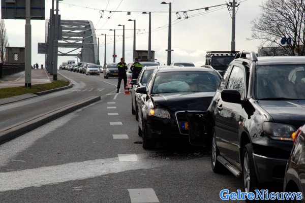 ARNHEM – Bij een kop staart aanrijding tussen drie auto’s op de John Frost brug vlak voor het Airborneplein zijn zaterdag twee auto’s zwaar beschadigd geraakt.
