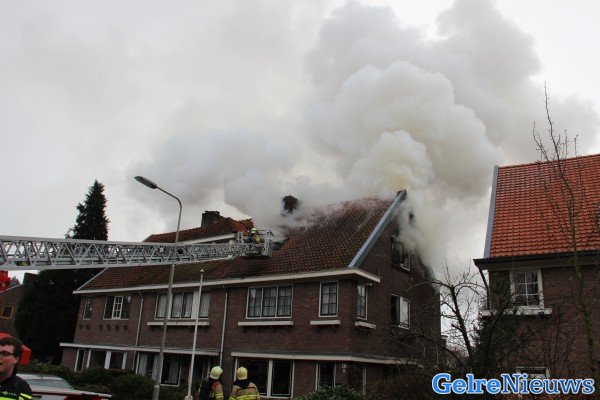 Vermoedelijk is de brand ontstaan in de CV-ketel. De brand was korte tijd uitslaand. De rook was goed in de omgeving te zien. In het dak zit nu een groot gat.