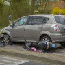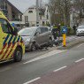 De politie leidt het verkeer langs het ongeval op. De jonge vrouw hoeft niet mee naar het ziekenhuis.