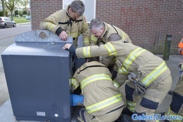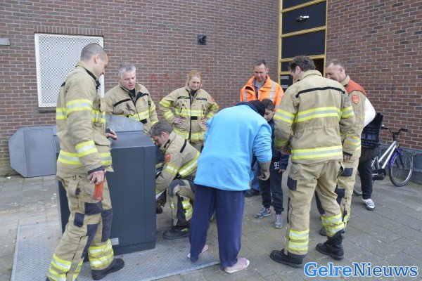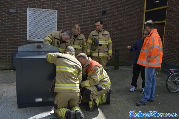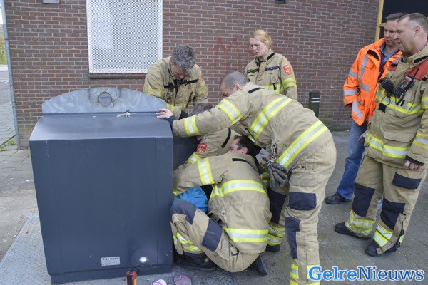 De brandweer en de storingsdienst van de gemeente kregen omstreeks 13:15 uur een melding dat er iemand vast zou zitten in een container. Een vrouw was in de container gegaan omdat haar sleutels erin waren gevallen, hierna kon ze niet meer zelfstandig de container verlaten. Met vereende krachten, en met behulp van een keukentrapje van een buurtbewoner, heeft de brandweer haar eruit gehaald.
