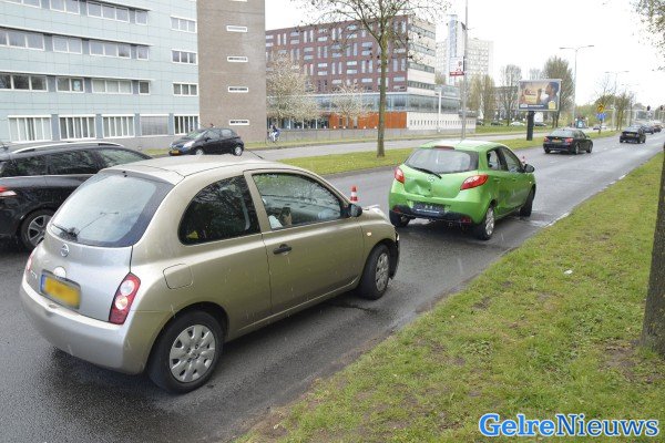 foto: Patrick ApenhorstARNHEM – Bij een kop-staart botsing tussen drie auto’s op de Burgermeester Matsersingel is zaterdagmiddag een vrouw gewond geraakt.