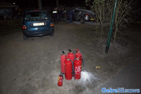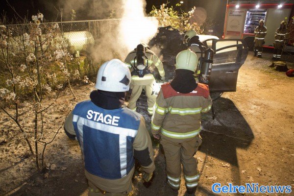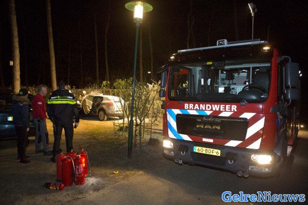 Iets na 4.10 uur werd een buurtbewoner wakker van een harde knal. Die keek naar buiten zag een geparkeerde auto in de brand staan. Inmiddels werden al meerdere mensen van omliggende stacaravans wakker. Samen hebben ze met meerdere schuim- en poeder blussers de brand proberen te doven. Echter bleven de vlammen maar terug komen. De gealarmeerde brandweer heeft het vuur geblust. Er is weinig meer over van de voorkant van de auto.