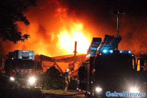 De vlammen sloegen meters hoog uit het pand toen de brandweer aankwam, Er was geen houden meer aan. De brandweer zette zich op dat moment volledig in op behoud van omliggende panden, met succes. De brandweer heeft het naastgelegen bebouwing en het woonhuis kunnen behouden.