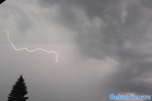 Er trekken momenteel zware onweersbuien over Gelderland. De waarschuwing voor extreem weer geldt van 17:00 tot 22:00 uur. Daarna blijft code geel van kracht tot ongeveer 01:00 uur komende nacht. Het KNMI meldt dat er een gevaar is voor blikseminslag, wateroverlast, hagel en zware windstoten. Dit wordt door onweersbuien met veel neerslag in korte tijd veroorzaakt. Tref maatregelen om schade en letsel te voorkomen, aldus het KNMI.