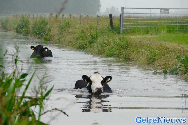 ELST– Twee koeien die op zwemtocht gegaan waren in Elst hebben dinsdagochtend de brandweer handenvol werk verzorgd.