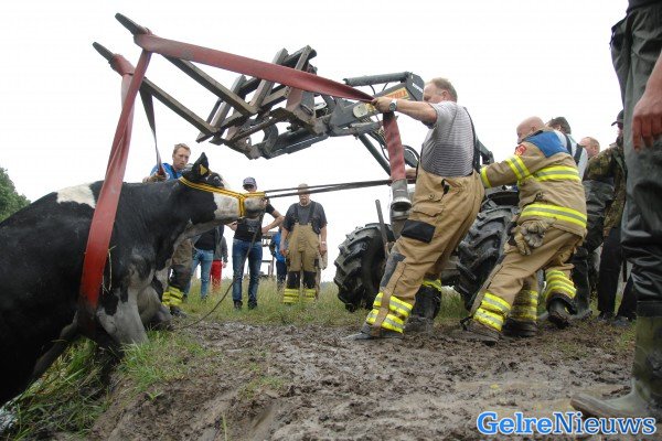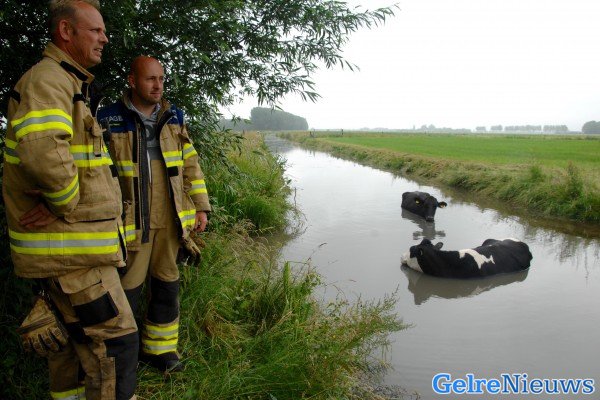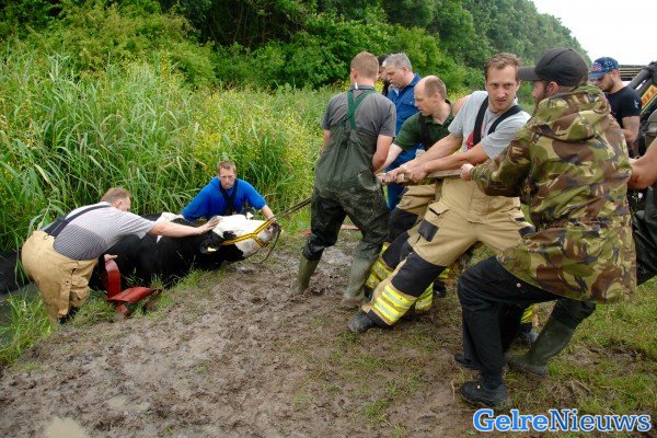 Met veel kunst en vliegwerk is het de brandweer gelukt om de dieren uit de diepe sloot te krijgen. De brandweer kreeg hulp van een behoorlijk aantal omstanders. Het “redden” van de dieren nam ruim tweeënhalf uur in beslag.