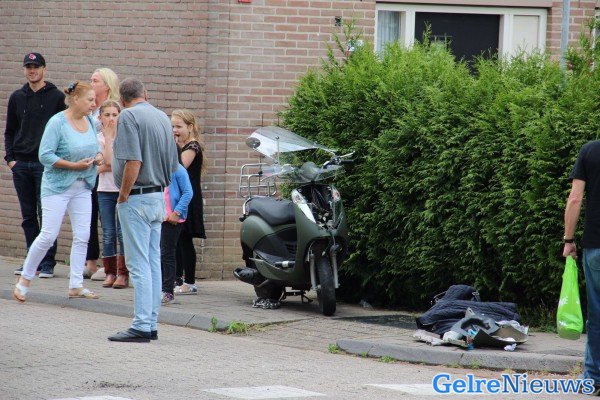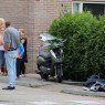 De scooter raakte zwaar beschadigd bij de aanrijding.