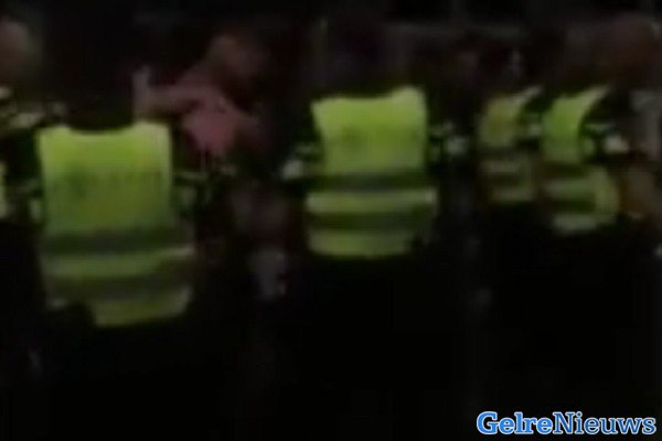 Onderstaand filmpje gaat over deze situatie. Direct in het begin is te zien dat een agent twee klappen uitdeelt.