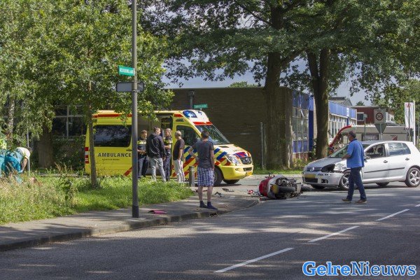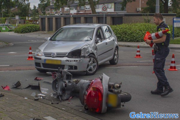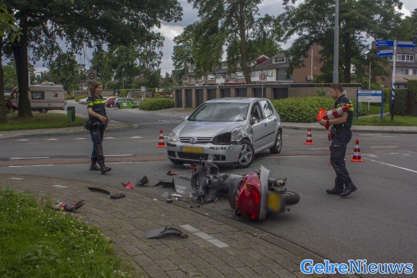 foto: Martin HeitinkDIEREN – Op de Imboslaan in Dieren is zondag eind van de middag een motorscooter in botsing gekomen met een auto.