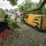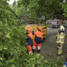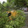 Mogelijk is deze tak bezweken door de hoeveel blad aan de tak. De bestelbus heeft schade opgelopen aan onder andere het dak.