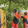 De buurvrouw van de eigenaar van de bestelbus waarschuwde hem omstreeks 6:55 uur dat er een grote tak op het voertuig lag. Die heeft vervolgens de brandweer ingeschakeld.Β De brandweer heeft de grote tak in stukken gezaagd.