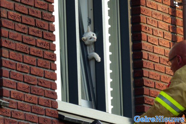 Op de Van Kleefstraat kwam een kat in een het nauw te zitten. De eigenaren van de kat waren niet thuis. Het slaapkamerraam van de woning op de eerste etage stond op een kier. De vogeltjes lonkten en de zon scheen: tijd voor een uitstapje moet deze kat gedacht hebben. Deze kat voegde de daad bij het woord, nam een sprong en deze kwam akelig klem te zitten.