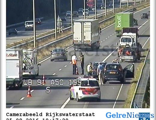 Rijstroken afgesloten na ongeval met meerdere voertuigen A50