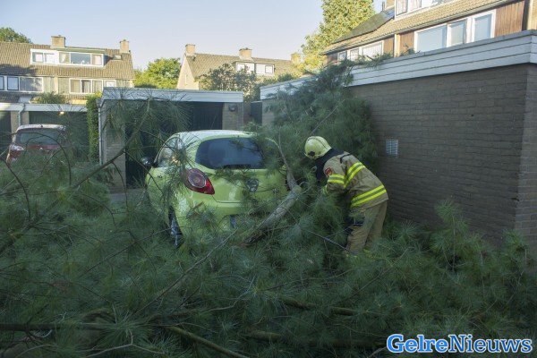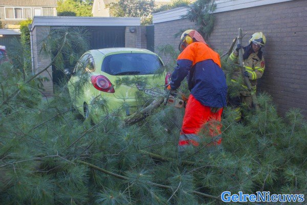 De eigenaren van de personenauto werden in de nacht al gewekt werden door een harde klap. Ze hebben vanochtend hebben omstreeks 7:50 uur de bij de brandweer een melding gedaan dat een grote tak was afgebroken en deels op de auto terecht was gekomen. Daarop werd de brandweer van Dieren opgeroepen die snel ter plaatse was. Zij hebben de grote tak in stukken gezaagd en op een veilige plek neer gelegd.