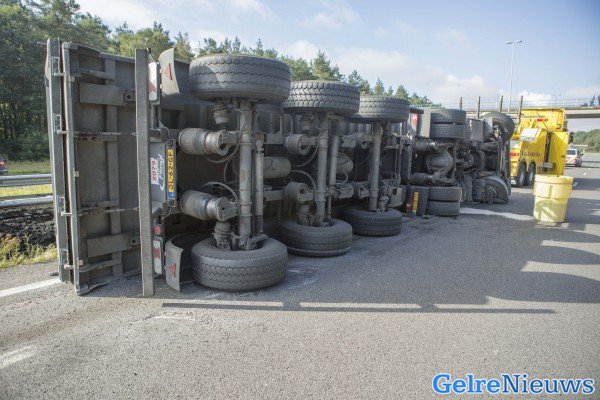 HOENDERLOO – De A50 bij Hoenderloo is momenteel afgesloten doordat er een vrachtwagen met vijverslib is gekanteld. De weg blijft zeker tot 14.00 uur volledig dicht in de richting van Arnhem.