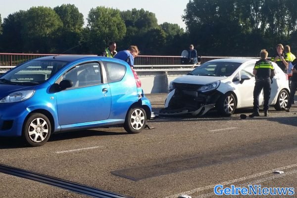 foto: Jefrey SlendebroekARNHEM – Op de John Frostbrug in Arnhem heeft dinsdag eind van de middag een kop-staart botsing plaatsgevonden tussen twee personenauto’s. Niemand raakte gewond.