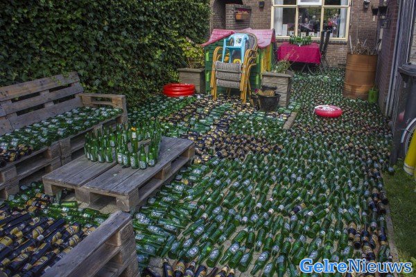 foto: Martin Heitink BRUMMEN – Wouter en Michelle Harberink uit Brummen zijn zaterdag 3 september getrouwd. Hierbij heeft het stel heeft tijdens hun huwelijk 3420 bierflesjes als huwelijkscadeau ontvangen, zo meldt de ceremoniemeester tegenover GelreNieuws. Alle flesjes lagen en stonden in de tuin van hun woning en ze mogen het zelf gaan opruimen, aldus de vriendengroep.
