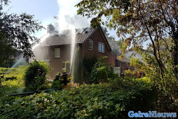 De brand woedt in het dak van de woning. De brandweer is met twee blusvoertuigen en een hoogwerker ter plaatse om de brand te blussen om zo veel mogelijk van de woning te kunnen behouden. Echter is de gehele bovenste verdieping al flink beschadigd. De woning is vermoedelijk onbewoonbaar.
