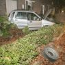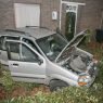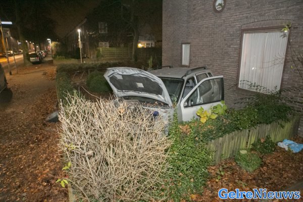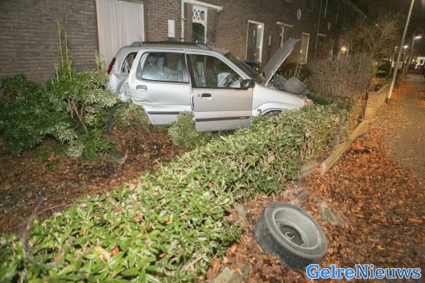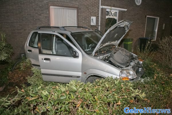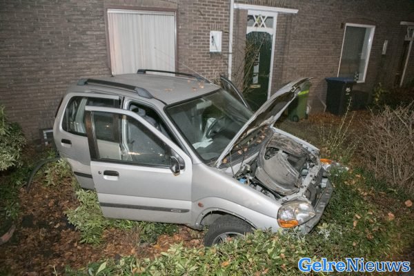 Zowel de auto als de tuin heeft grote schade opgelopen. Het voertuig is geborgen door een bergingsbedrijf.