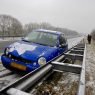 “Ik wist niet wat mij overkwam. Hij begon opeens te glijden en voor ik het wist lag ik onderaan in het talud.” Aldus de op het oog zeer rustig reagerende bestuurder. “We waren een proefrit aan het maken, maar deze wordt hem dus niet. Wel iets soortgelijks, want hij heeft zich nu wel bewezen” vervolgt de man die ondanks alles toch nog een glimlach op zijn gezicht kon toveren.