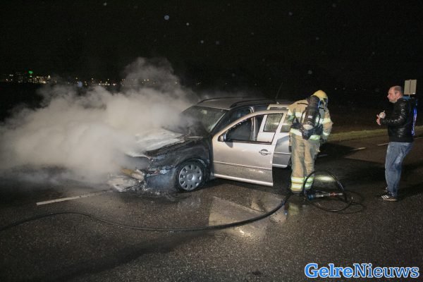 WESTERVOORT – Op de IJssedijk in Westervoort is donderdagavond een auto in de brand gevlogen. De twee inzittenden kwamen met de schrik vrij.