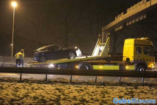 De auto is geborgen door een bergingsbedrijf. In de bocht gebeurd met regelmaat ongevallen. Vorig jaar werd er nog een extra bord geplaatst met adviessnelheid.