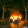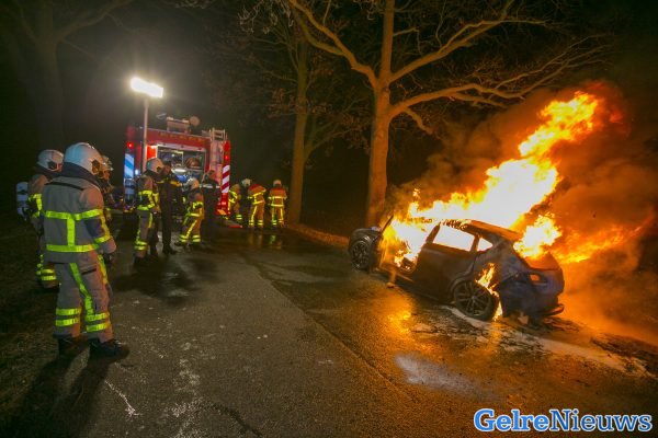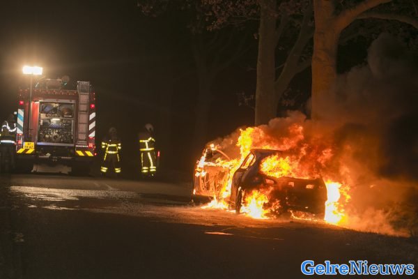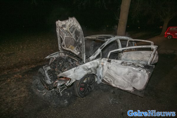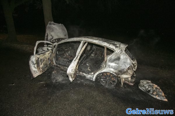 De auto was niet meer te redden en omdat het vuur niet te doven was vanwege de brandstof, werd er besloten om de auto even te laten branden. Hij stond toen binnen korte tijd weer geheel in lichterlaaie.
