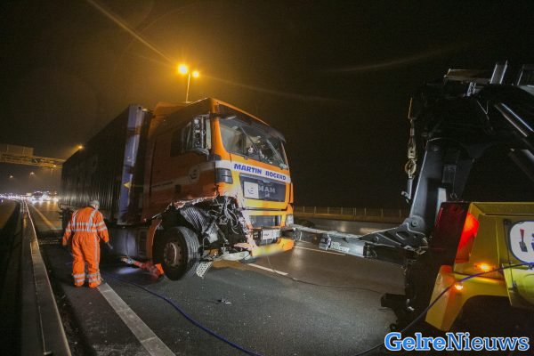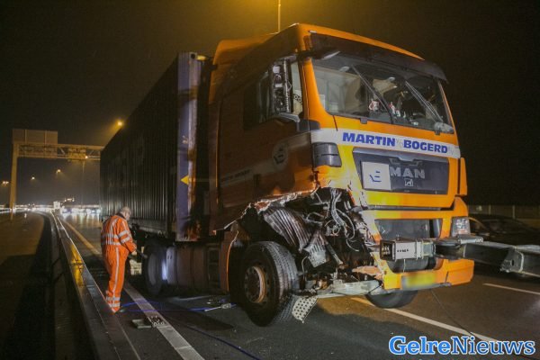 Als de bestuurder niet veilig was gaan staan, had die het hoogstwaarschijnlijk niet kunnen na vertellen. De vrachtwagenchauffeur kwam ook met de schrik vrij. Twee rijstroken waren vanwege de berging een aantal uren afgesloten in de richting van Nijmegen.
