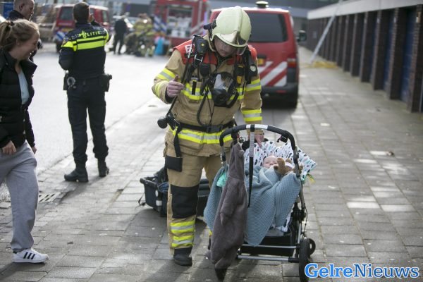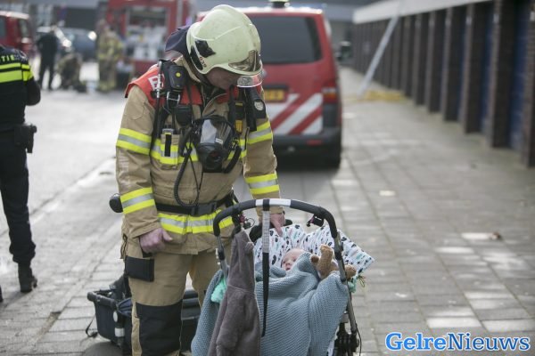 ARNHEM – Bij een brand in een flatwoning donderdagochtend op de vierde etage aan het Gildemeestersplein in Arnhem, zijn moeder en baby met de schrik vrijgekomen.