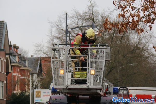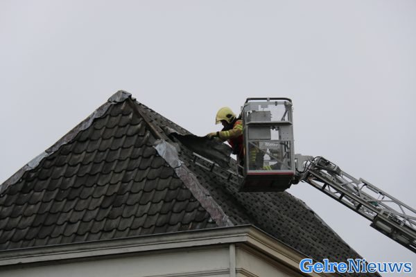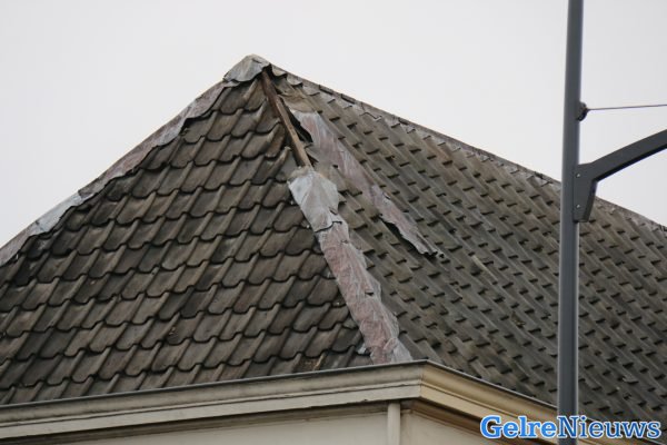 Een omstander zag een grote loodflap los hangen op het dak van de woning waarna de brandweer omstreeks 09:30 uur werd gebeld. Volgens een brandweerman ter plaatse zou dit gebeurd zijn door de storm van afgelopen donderdag. Vanwege de hoogte werd de hoogwerker van Arnhem gealarmeerd die het loszittende deel verwijderd heeft.