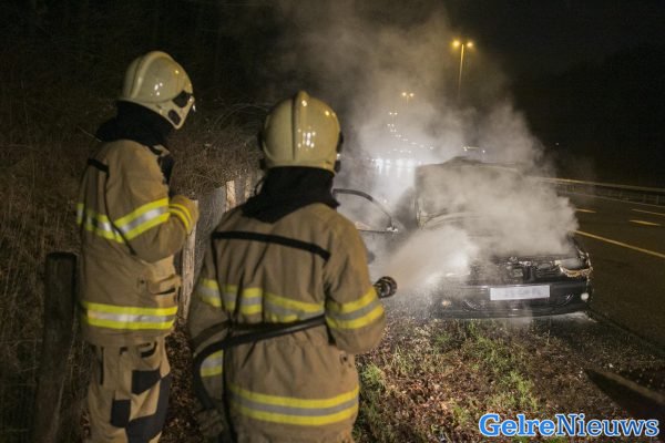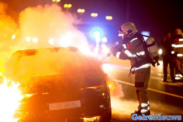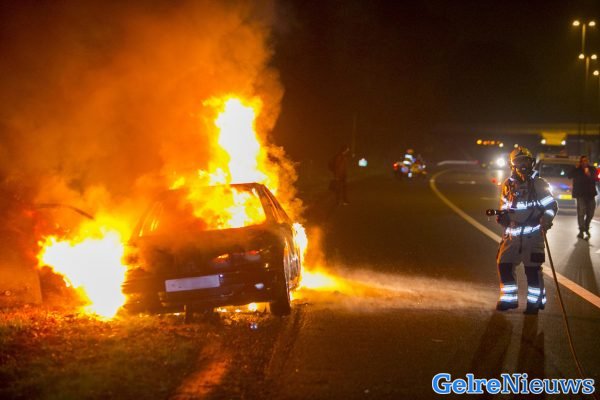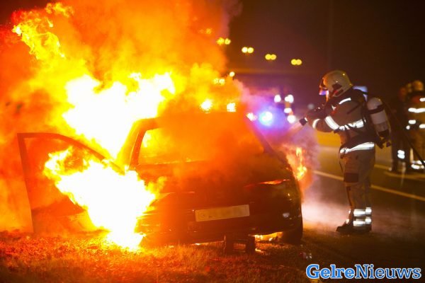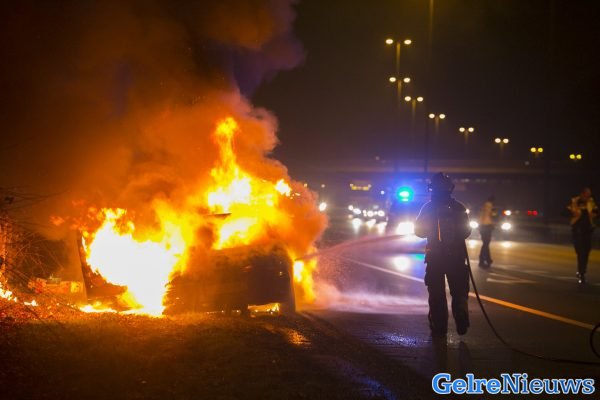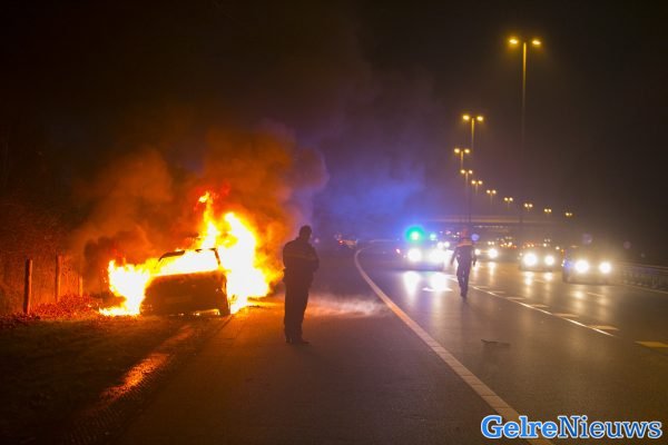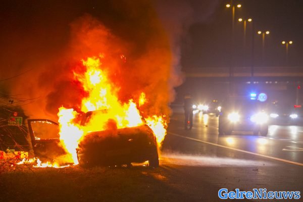 ARNHEM – Op de A12 net voor afslag Arnhem-Noord is woensdagavond een auto volledig in vlammen opgegaan. De bestuurder en de bijrijder kwamen met de schrik vrij.