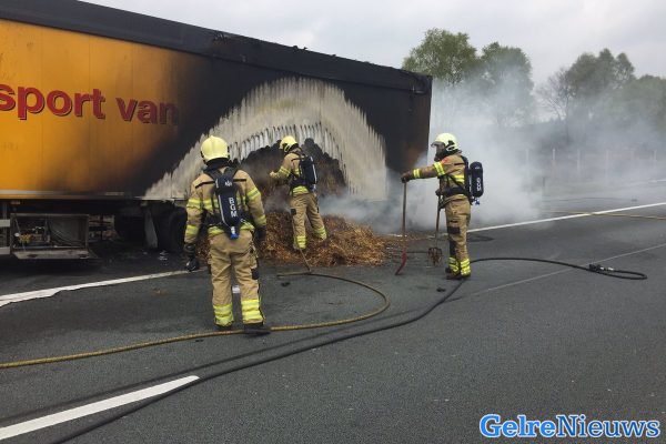 Rond 12.40 uur werden hulpdiensten gealarmeerd. Bij één van de achterwielen van de trailer ontstond door nog onbekende reden een brand. De vrachtwagen is geladen met stro.