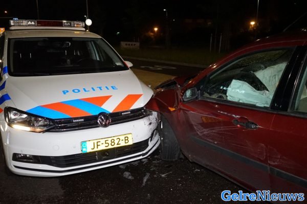 Het gebeurde rond 23.30 uur op de Neerbosscheweg in Nijmegen. Agenten stonden voor het verkeerslicht te wachten toen er een voertuig met hoge snelheid aan kwam rijden. Ze zagen dat hij de bocht niet ging halen en zagen hem over de middenberm zo tegen hun voertuig aanrijden.