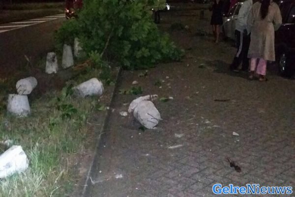 Bestuurder ramt twaalf betonnen plaatjes en boom uit grond in Nijmegen