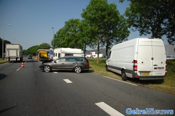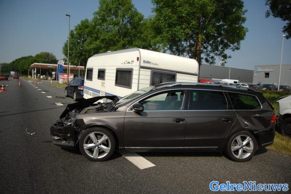 Achter de pech combinatie stond een auto. Deze auto werd aangereden door een bestelbus. De auto reed vervolgens een lantaarnpaal uit de grond en kwam tegen de caravan tot stilstand.