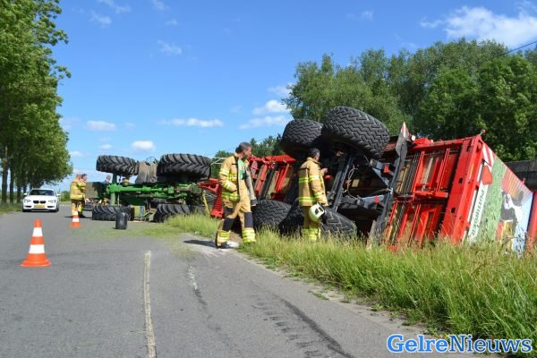 BEMMEL – Aan de Dikselsestraat in Bemmel is zaterdagmiddag een tractor met een silagewagen gekanteld.