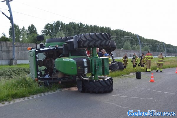 Tractor kantelt in Bemmel, man en kind slechts schaafwonden