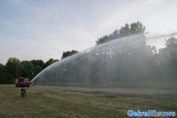 foto: Patrick ApenhorstARNHEM – De brandweer van Arnhem is maandagavond uitgerukt naar een buitenbrand in het Immerloopark in Arnhem-Zuid. Ze zette hiervoor het grote waterkanon van hun voertuig in.