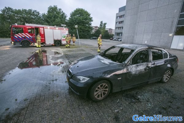 Brandstichting wordt niet uitgesloten. De auto is geborgen door een bergingsbedrijf.