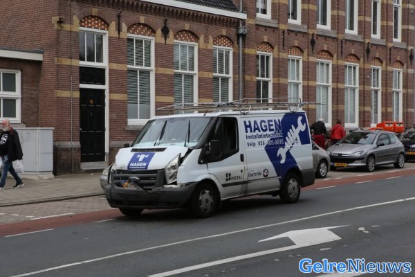 VELP – Op de President Kennedylaan in Velp is donderdagmiddag een busje achterop een auto met aanhanger gereden.