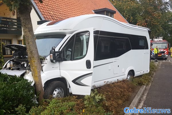 BEMMEL – Op de Flierenhofstraat in Bemmel is donderdagmiddag een camper tegen een boom gebotst.