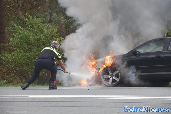WOLFHEZE – Een auto is woensdagmiddag in de brand gevlogen op de kruising Amsterdamseweg met de van Nieuwenhuijzenweg in Wolfheze. De bestuurder kwam met de schrik vrij.