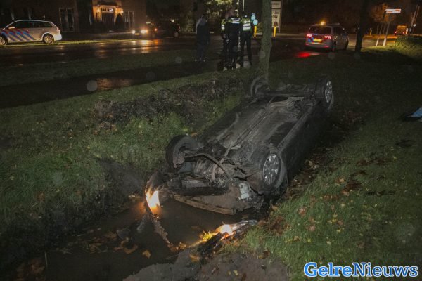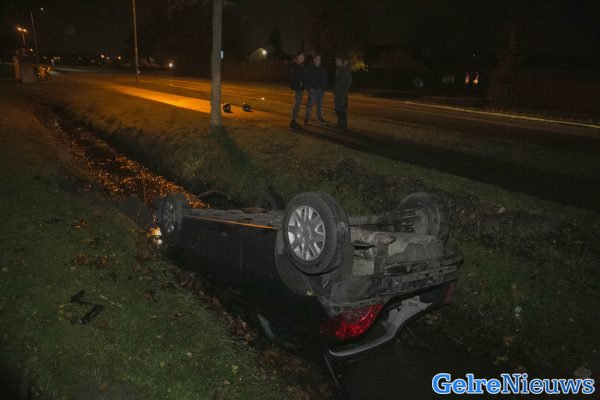 Het gebeurde rond 1.30 uur. De auto raakte van de de weg en kwam in de sloot tot stilstand. Hulpdiensten werden na de melding massaal opgeroepen, waaronder een traumahelikopter. Uiteindelijk bleek het ter plekke relatief mee te vallen.