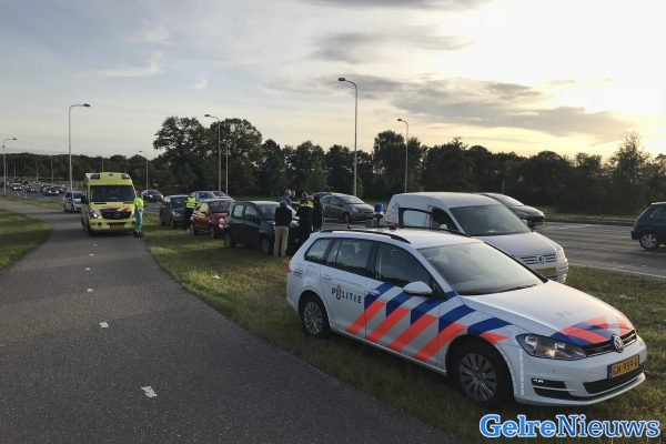Rond 17.30 uur werden hulpdiensten gealarmeerd. Meerdere voertuigen zijn achter op elkaar geklapt. Vier auto’s hebben schade aan voor of achter zeide op gelopen. Waarschijnlijk zijn de auto’s tijdens het wachten voor het verkeerslicht op elkaar gebotst.
