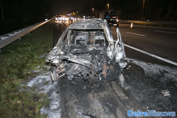 Het ongeval gebeurde omstreeks 21.00 uur op het traject van Utrecht richting Arnhem, ter hoogte van de afslag naar Oosterbeek. Een 46-jarige man uit Vaassen botste door nog onbekende oorzaak achterop een vrachtwagen, bestuurd door een 19-jarige man uit Oss. Door de botsing vloog de auto van de Vaassenaar gelijk in brand. Ook was de auto door de klap vastgeraakt aan de vrachtwagen.