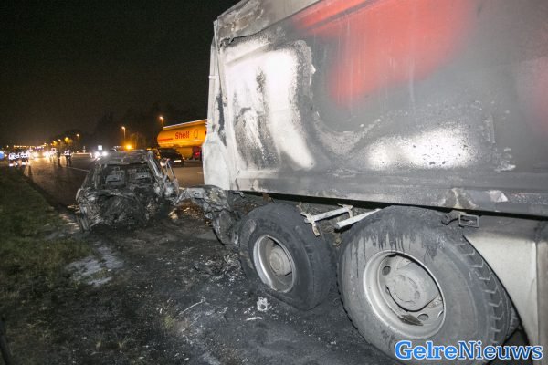 De chauffeur zag kans de combinatie op de vluchtstrook stil te zetten. Kort daarna sloeg het vuur ook over op de truck. Samen met een getuige werd de automobilist uit Vaassen uit zijn auto gehaald. De man is later met de traumahelikopter naar het ziekenhuis in Utrecht gebracht. De trucker was bij het ongeval met de schrik vrij gekomen.