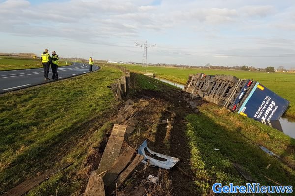 PUIFLIJK – Op de Maas en Waalweg in Puiflijk is dinsdagmorgen een vrachtwagen de sloot in gereden. Een auto reed hierna ook in de sloot terwijl de bestuurder de vrachtwagenchauffeur wilde helpen.