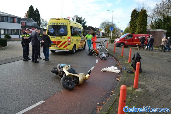 De jongeman is met onbekend letsel met spoed naar het ziekenhuis vervoerd. Medewerkers van Bike Totaal Leenders hebben tijdelijk de bromfiets gestald.