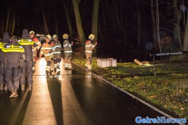 DOORWERTH – Op de Fonteinallee in Doorwerth zijn dinsdagavond meerdere jerrycans en emmers met onbekende inhoud aangetroffen langs de weg.